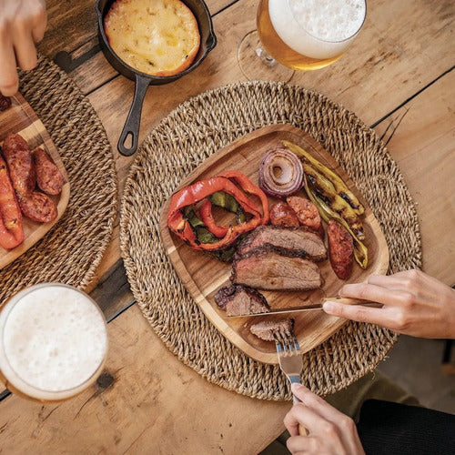 Plato de madera Acacia, con dimensiones ideales para servir tus platos preferidos de manera elegante.
