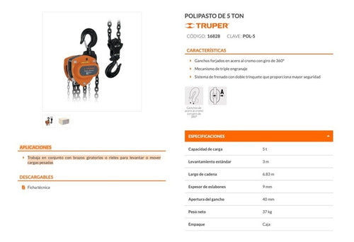 Tecle Truper Cadena 5 Ton X 3 Mts